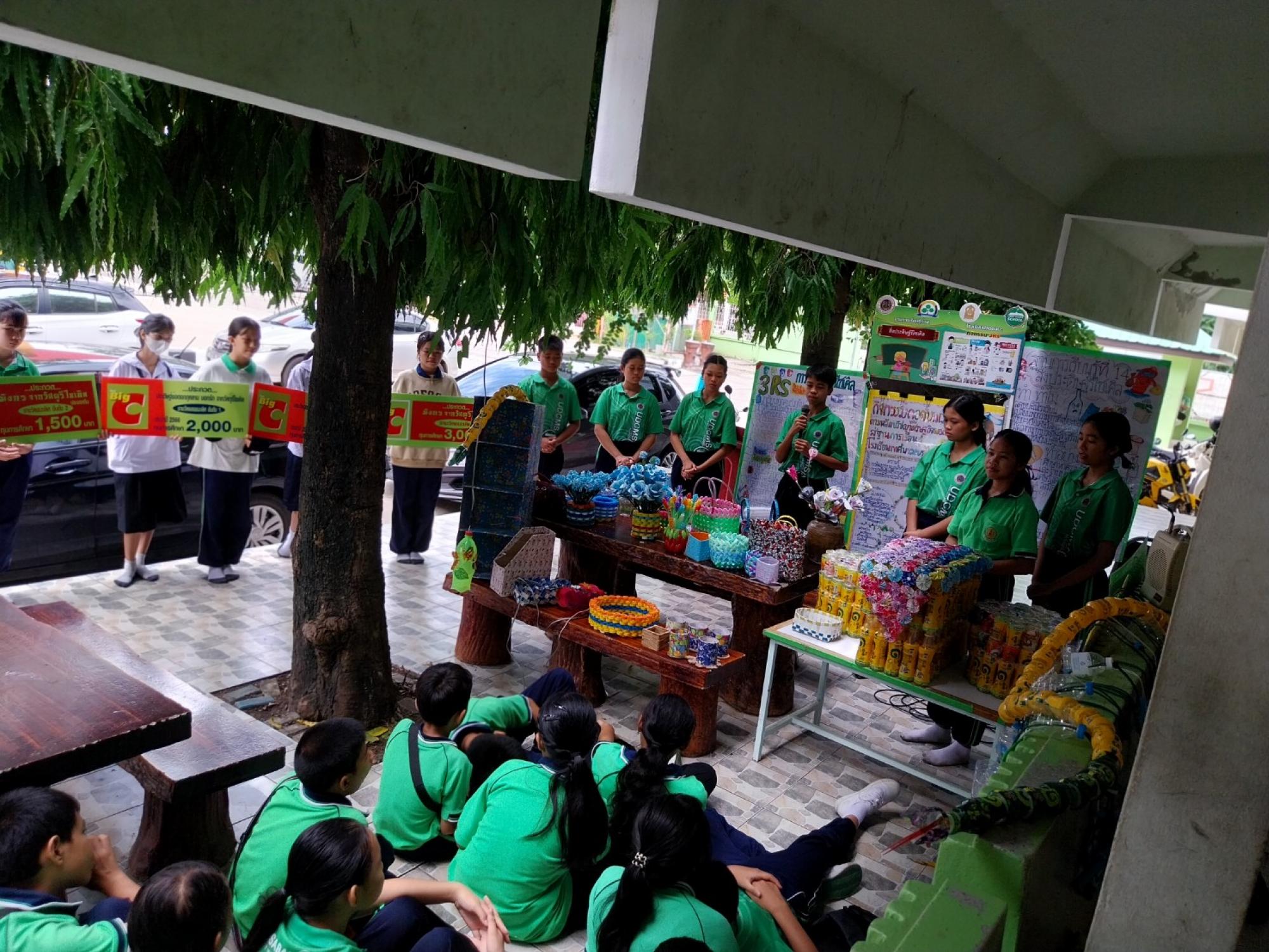 ผลิตภัณฑ์ที่ได้มีหลากหลายชิ้นงาน ได้แก่ การทำกระถางต้นฤาษี จากขวดน้ำ โคมไฟจากขวดน้ำอัดลม แจกันดอกไม้ ถาดผลไม้จากฝาขวดพลาสติก และ งูน้อยคอยรักจากขวดน้ำโออิชิ