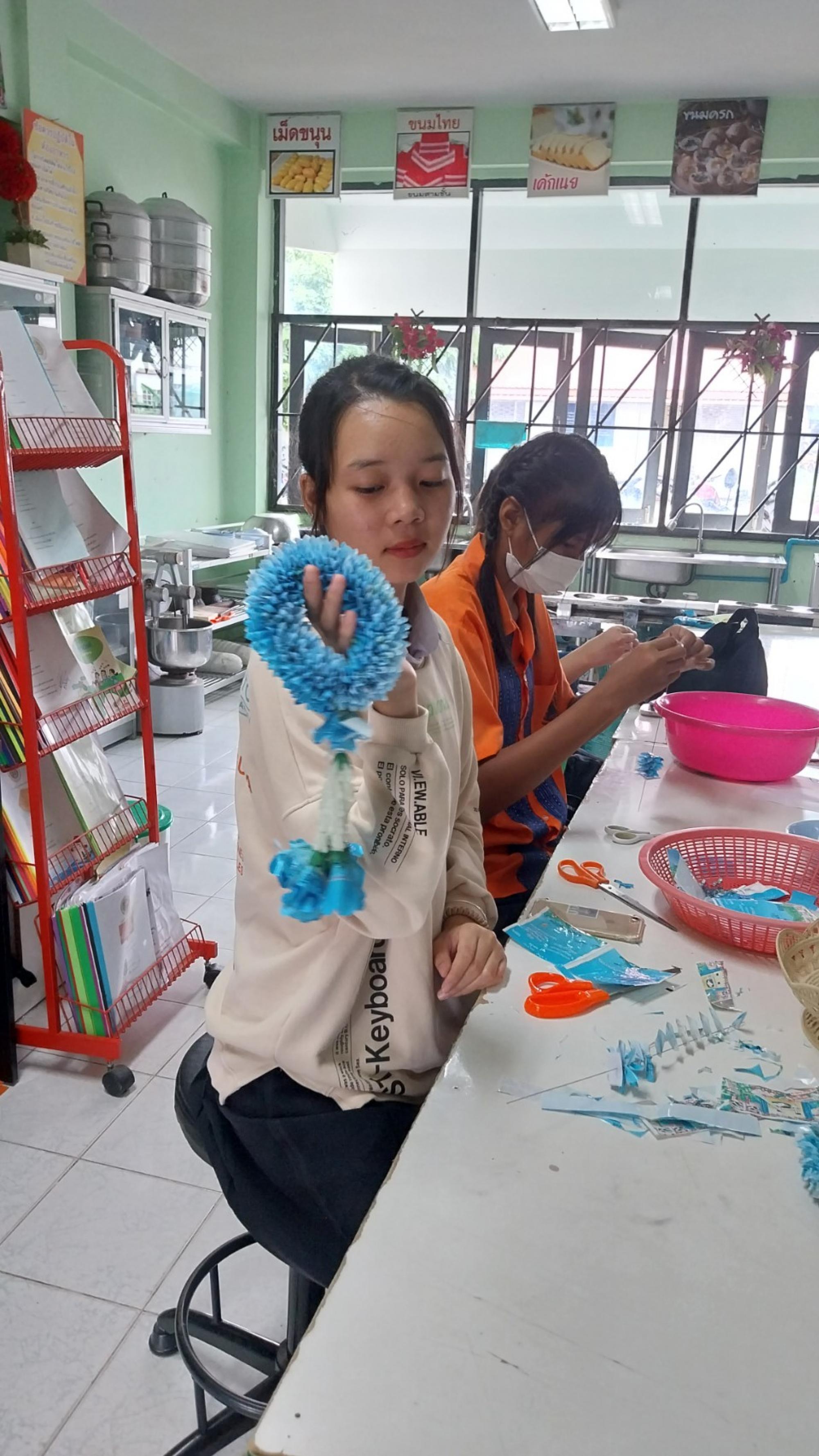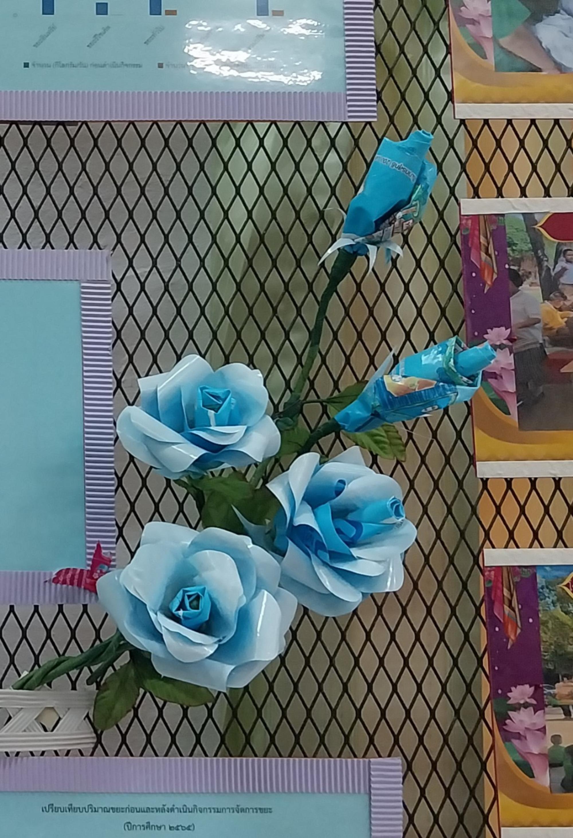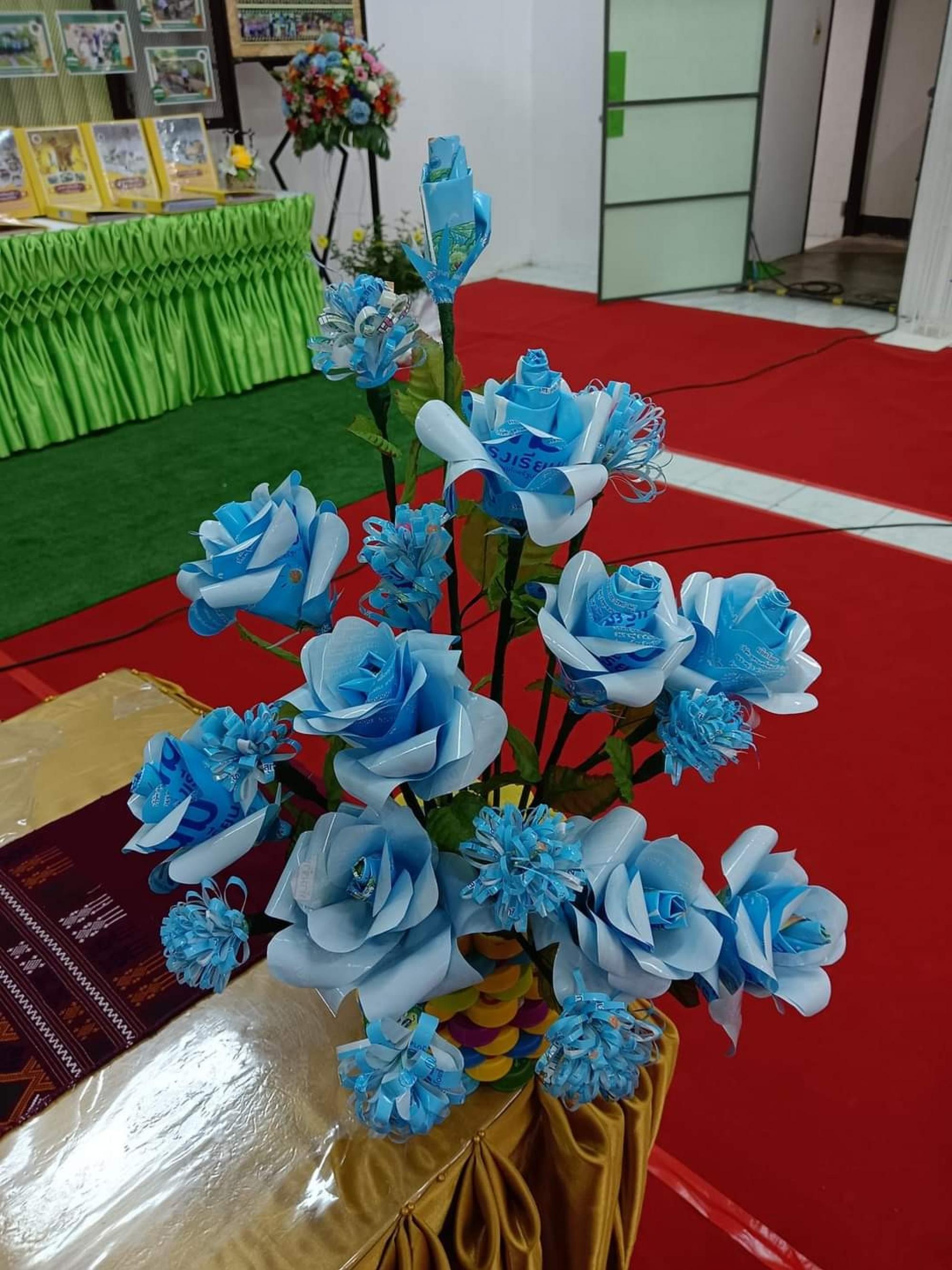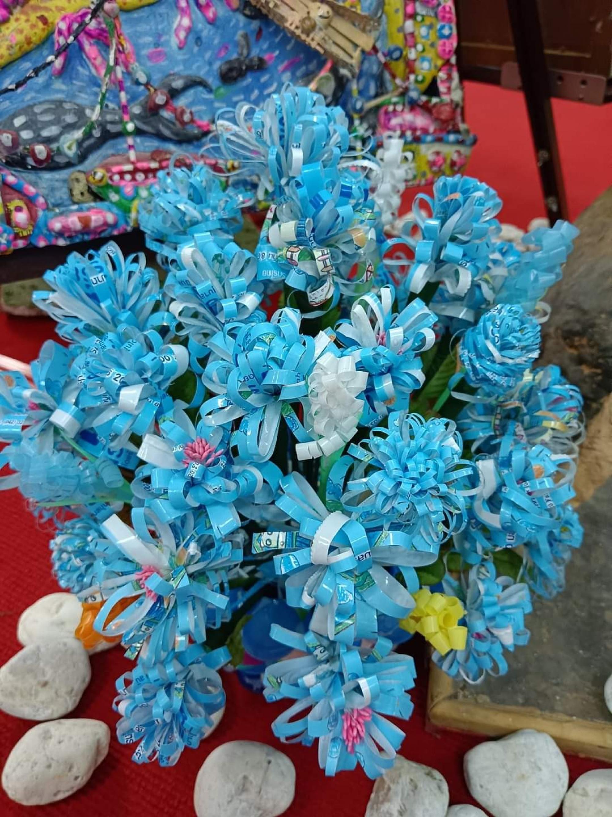 ดอกคาร์เนชั่นจากถุงนม เป็นผลิตภัณฑ์อันสวยงามจากงานฝีมือนักเรียนฐานกิจกรรมประดิษฐ์รีไซเคิล