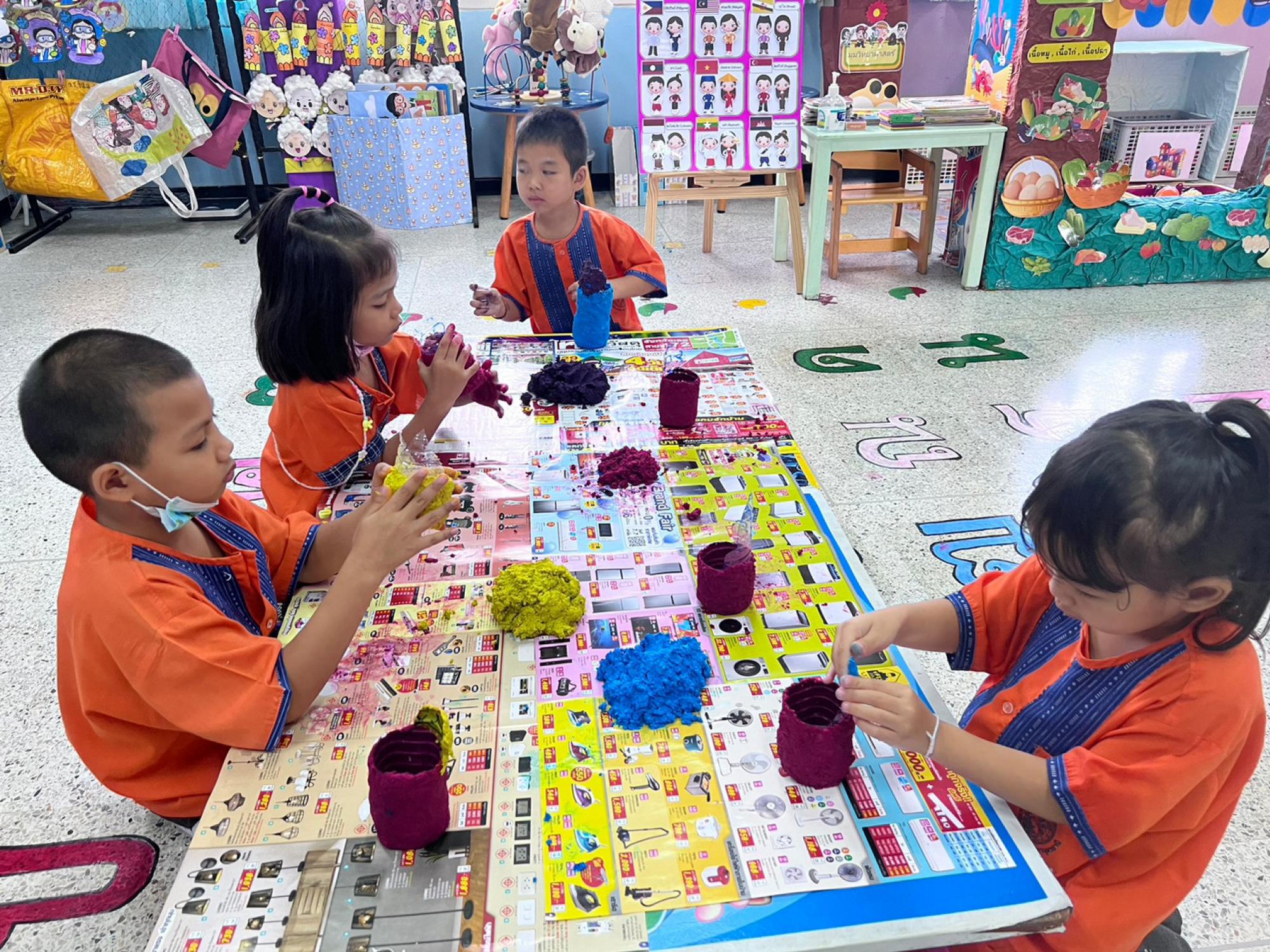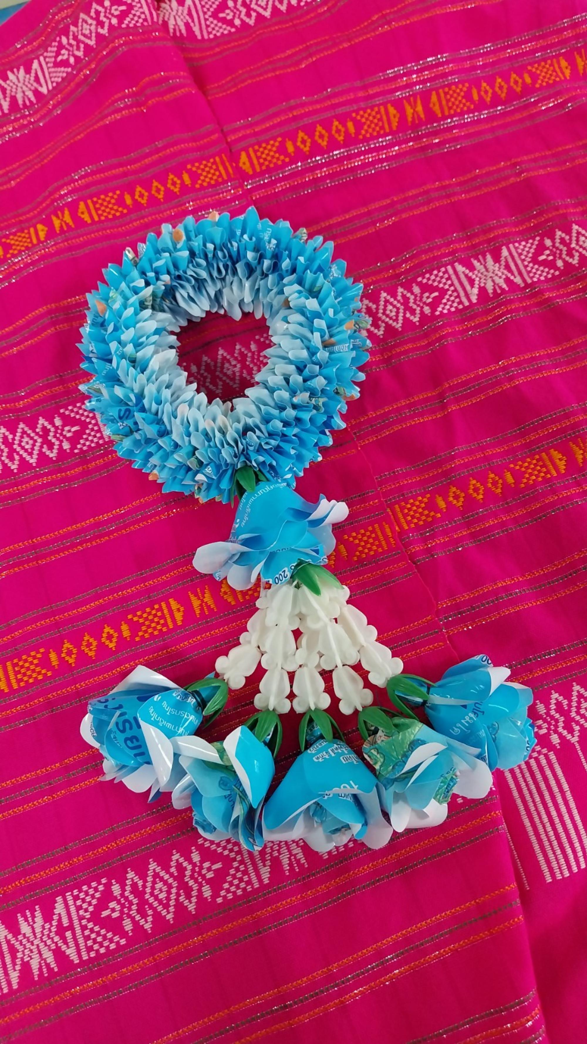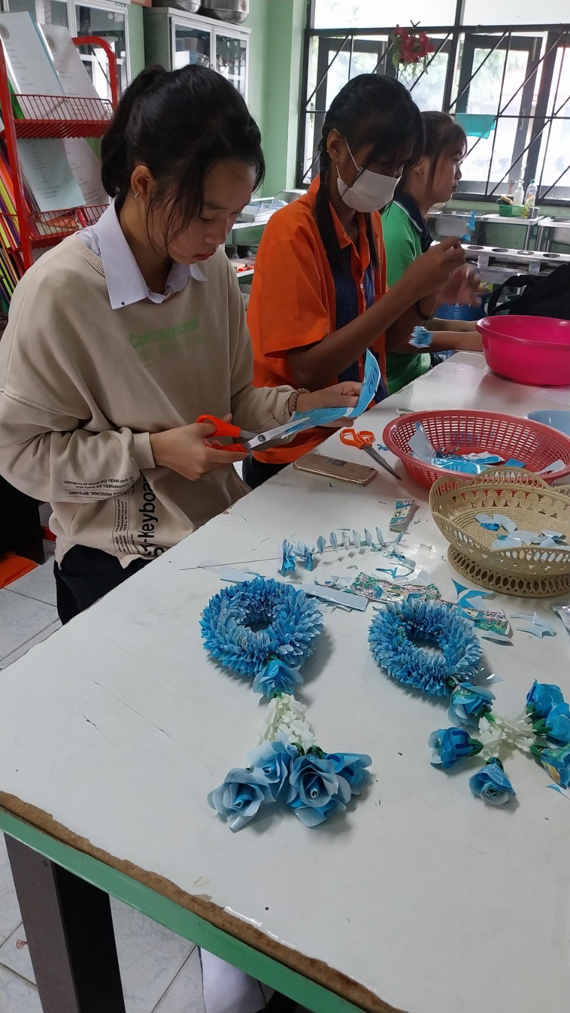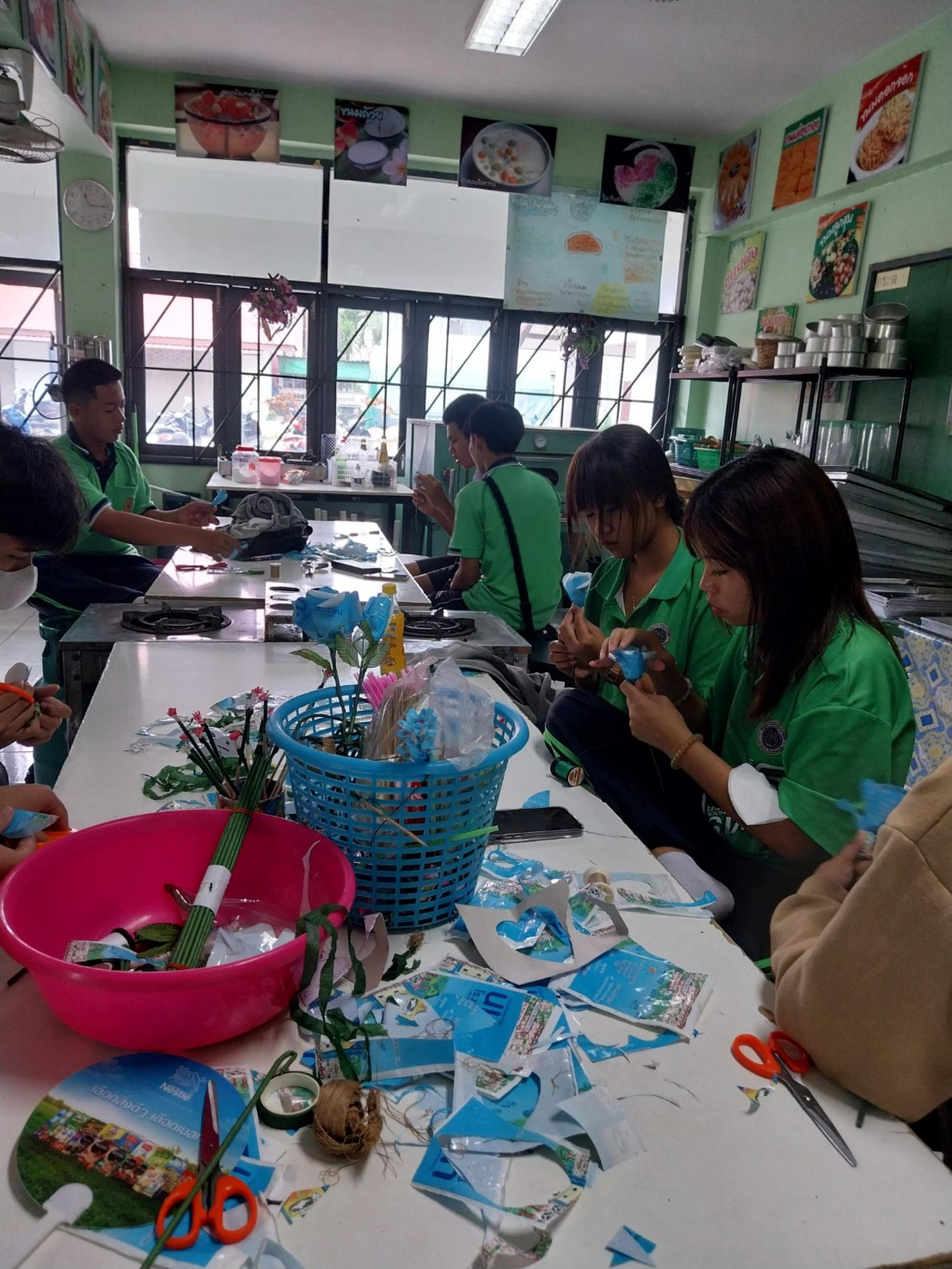 ดอกคาร์เนชั่นจากถุงนม เป็นผลิตภัณฑ์อันสวยงามจากงานฝีมือนักเรียนฐานกิจกรรมประดิษฐ์รีไซเคิล