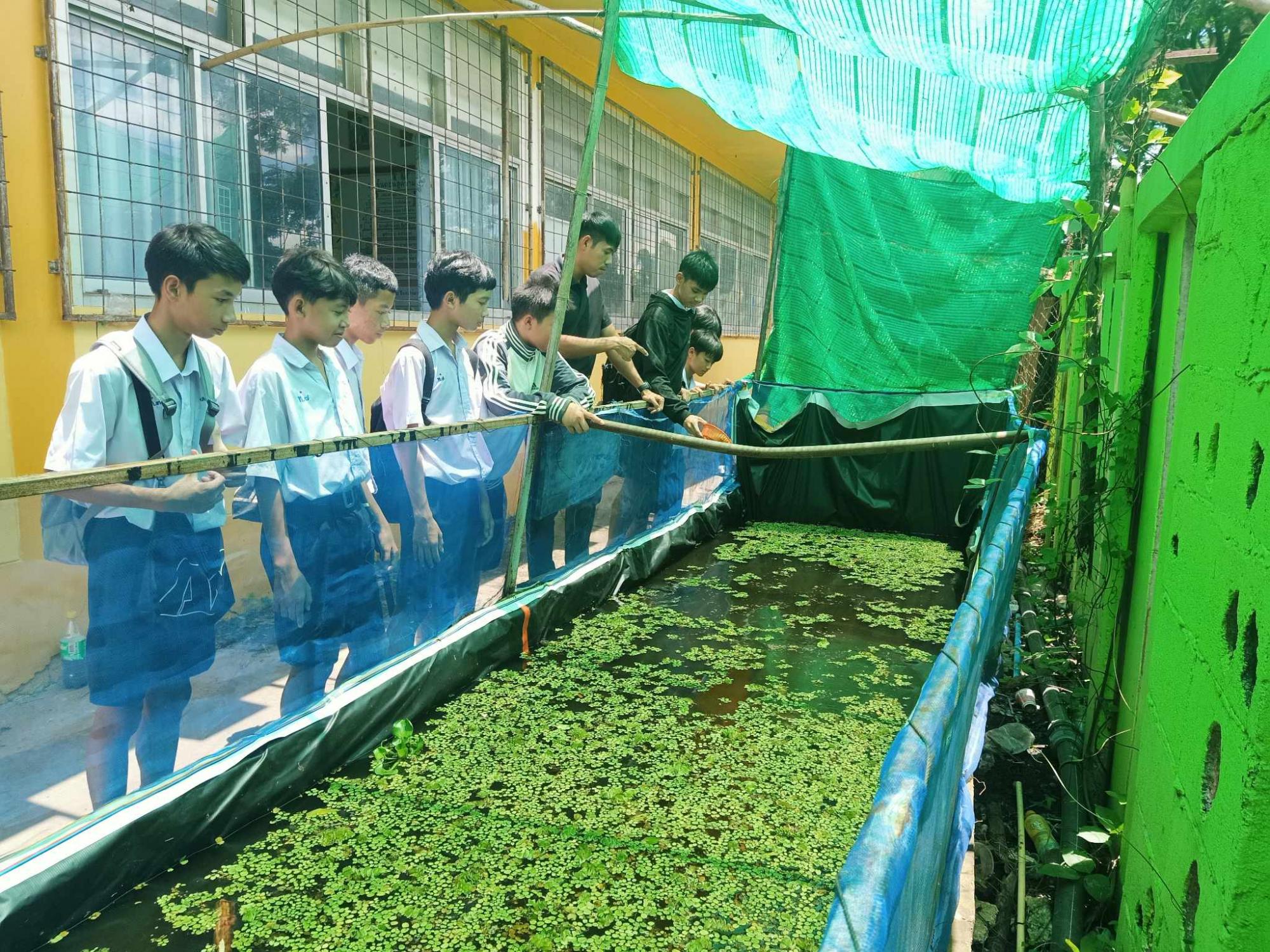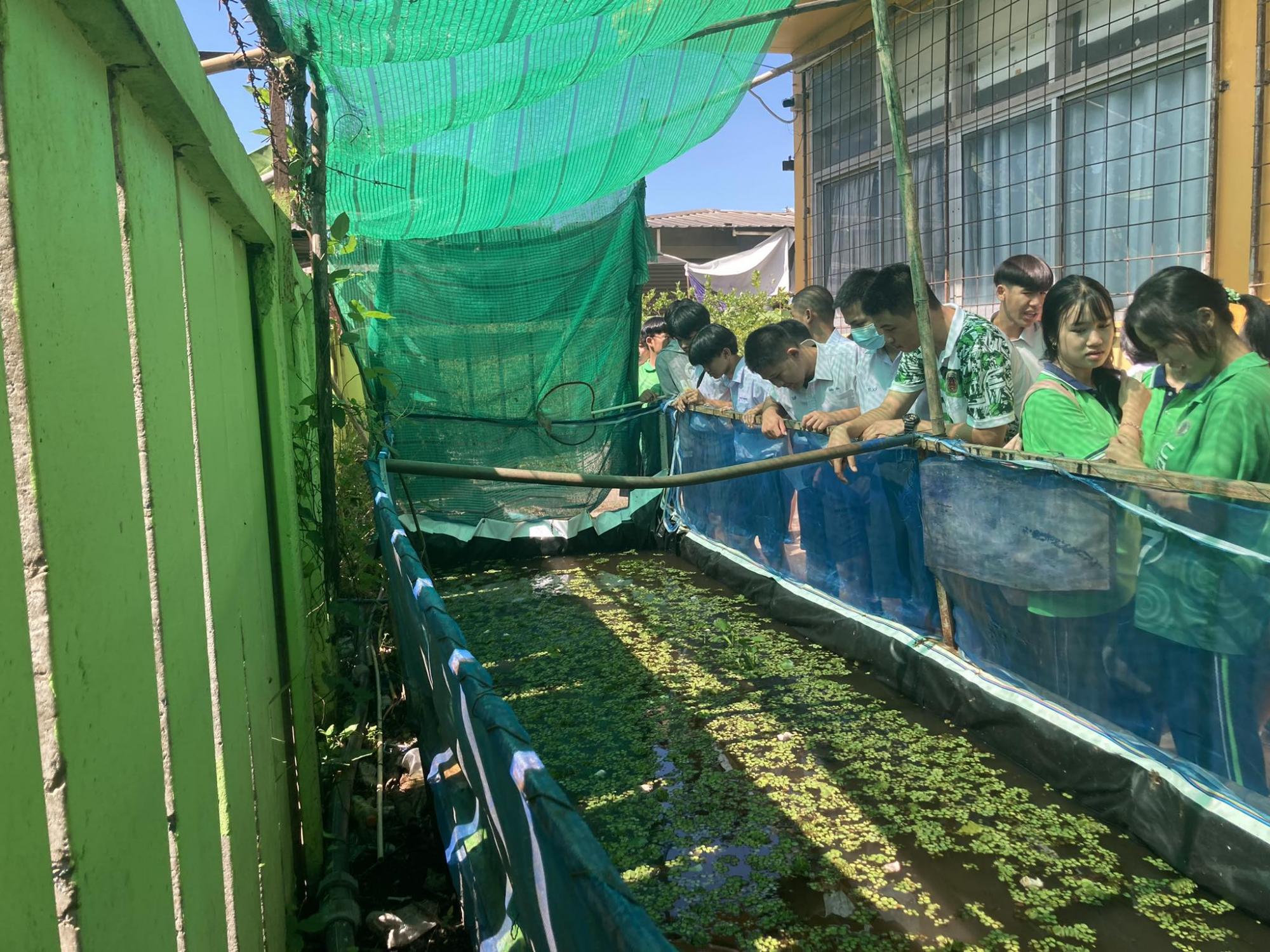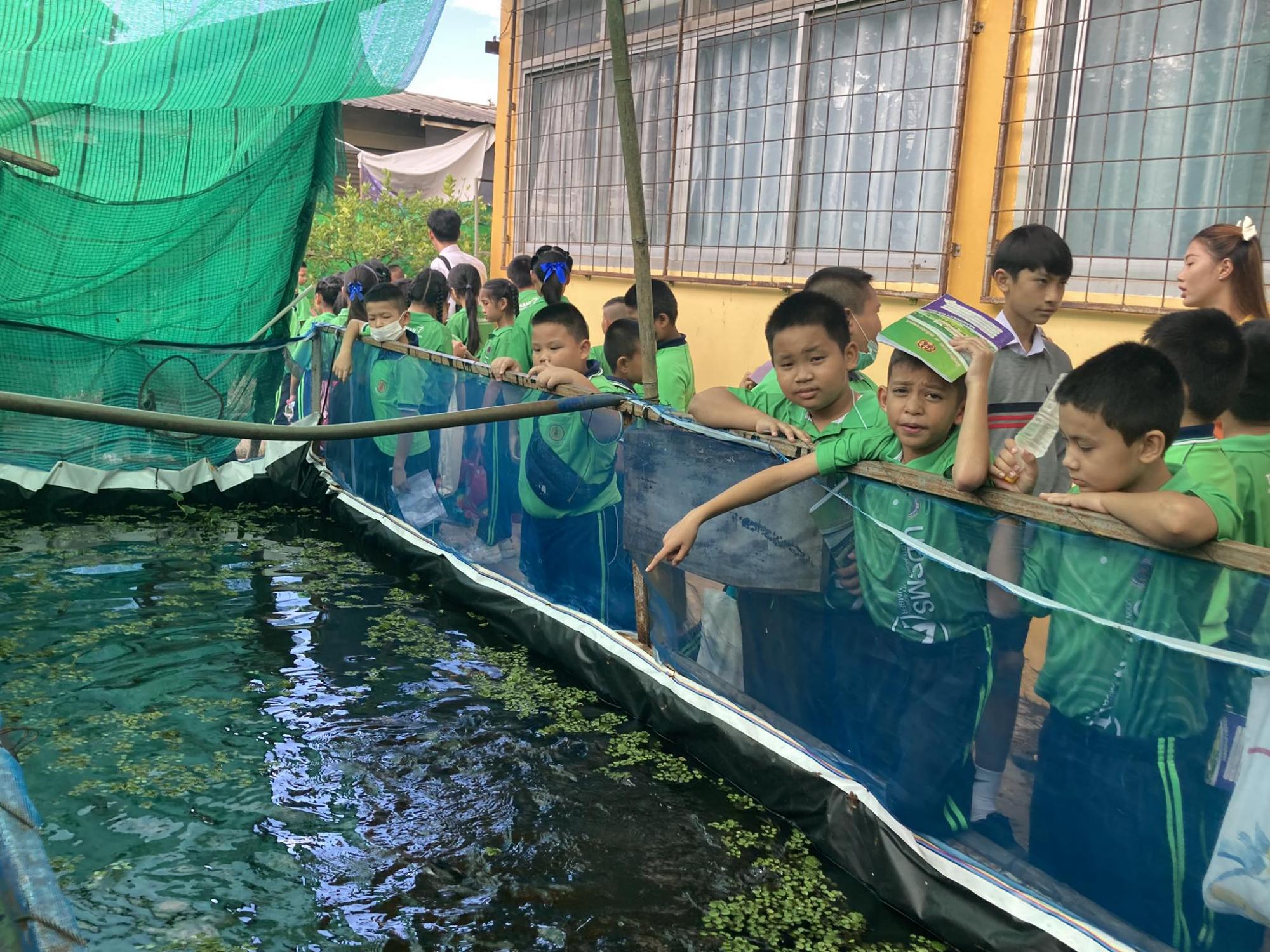 ฐานการเรียนรู้ การเลี้ยงปลาดุก สายพันธุ์ปลาดุกที่เลี้ยงคือ สายพันธุ์ปลาดุกบิ๊กอุย เลี้ยงในบ่อซีเมนต์ โดยกลุ่มนักเรียนแกนนำ ที่เป็นนักกีฬาของโรงเรียน
