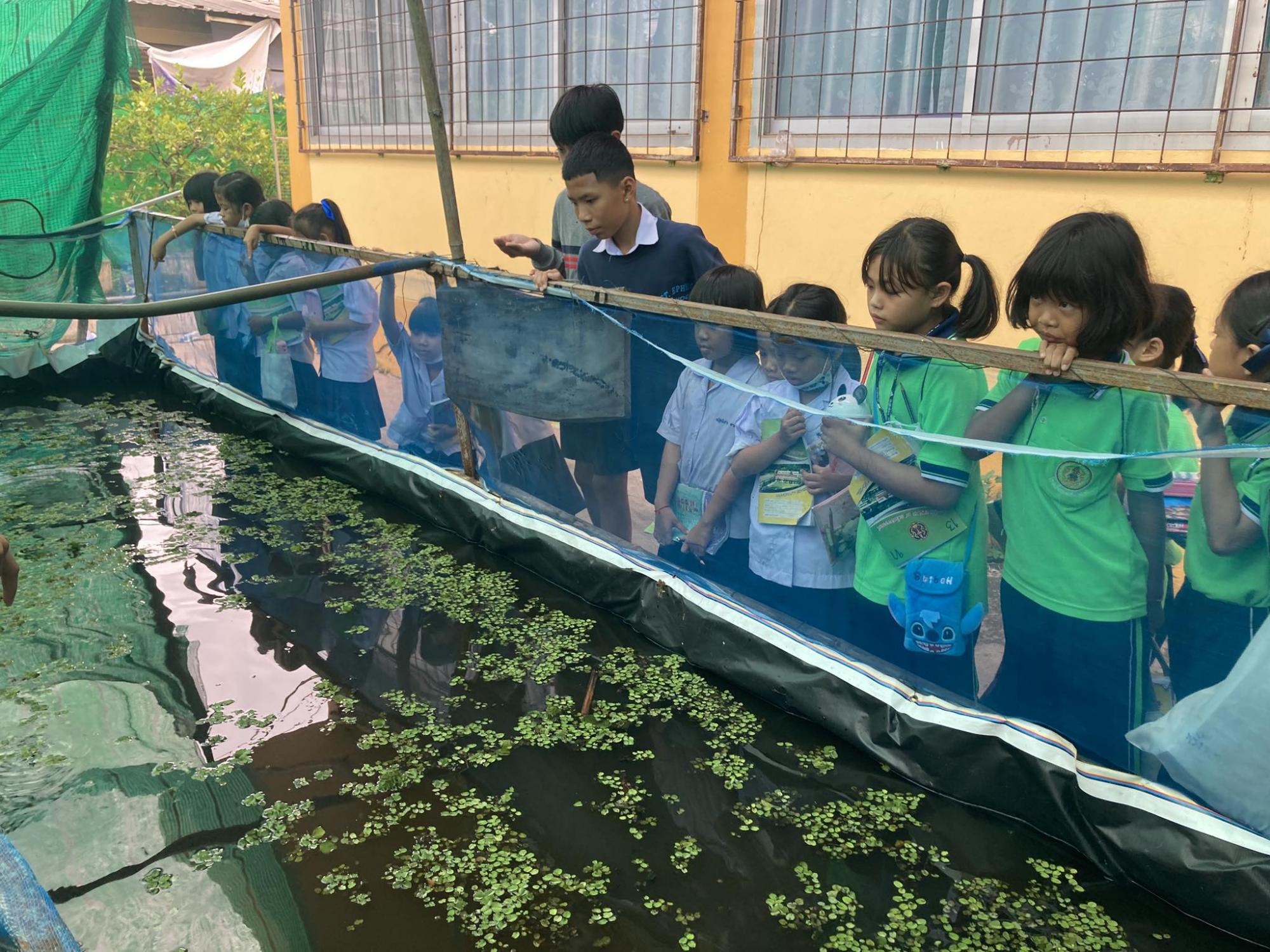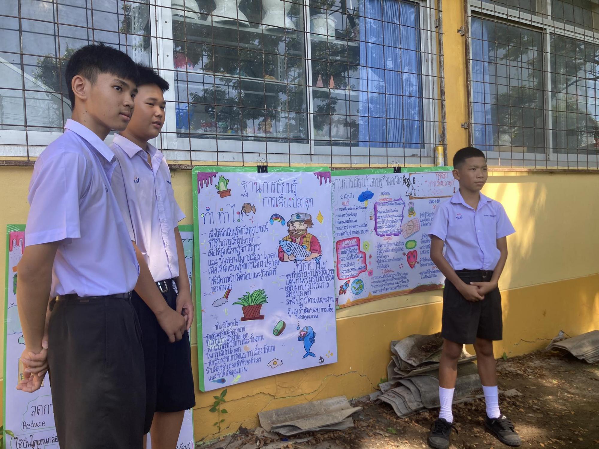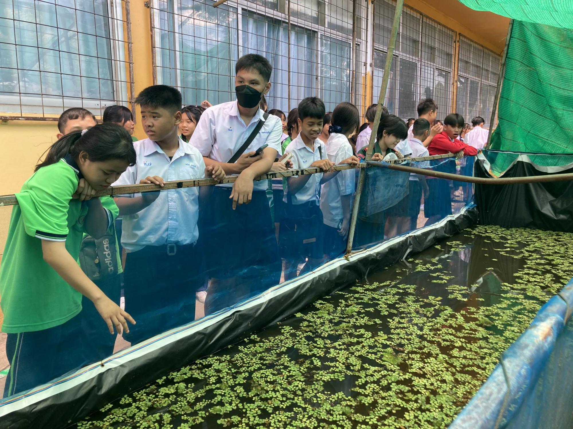 ฐานการเรียนรู้ การเลี้ยงปลาดุก สายพันธุ์ปลาดุกที่เลี้ยงคือ สายพันธุ์ปลาดุกบิ๊กอุย เลี้ยงในบ่อซีเมนต์ โดยกลุ่มนักเรียนแกนนำ ที่เป็นนักกีฬาของโรงเรียน